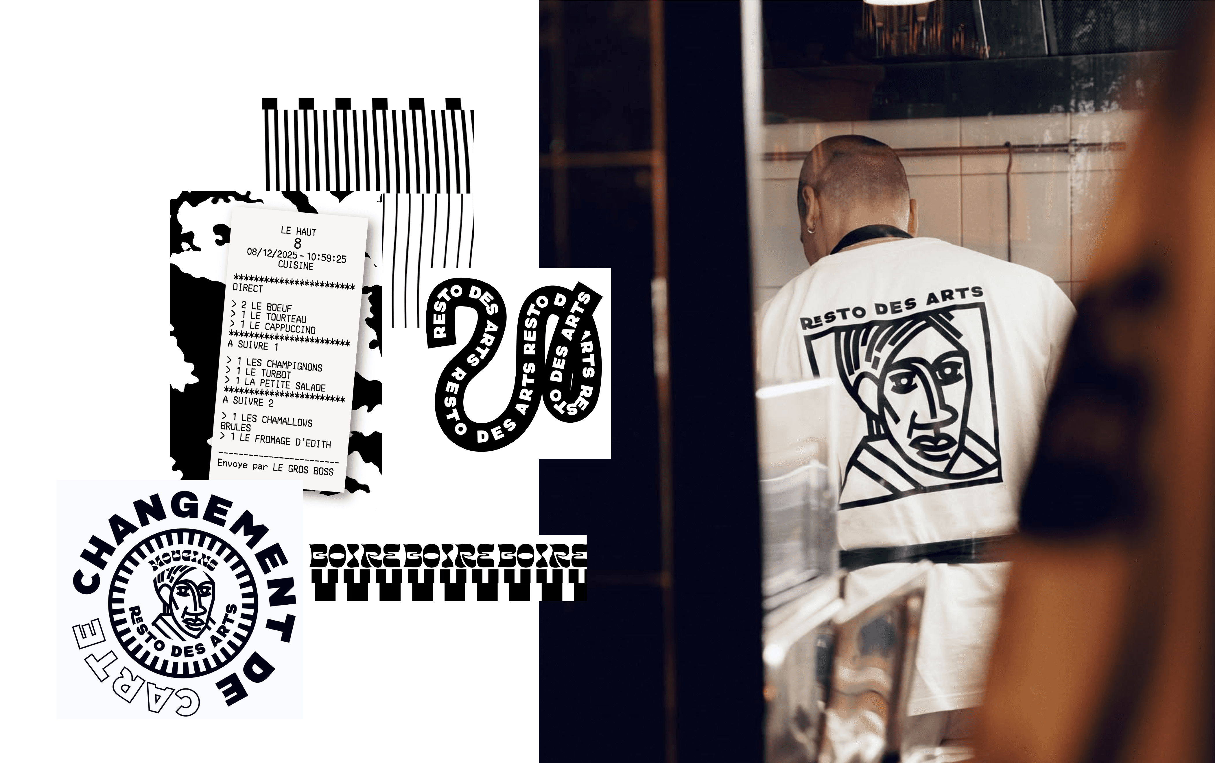 Création de l’identité visuelle et de la direction artistique globale pour Le Resto des Arts, installé dans le Vieux Village de Mougins.