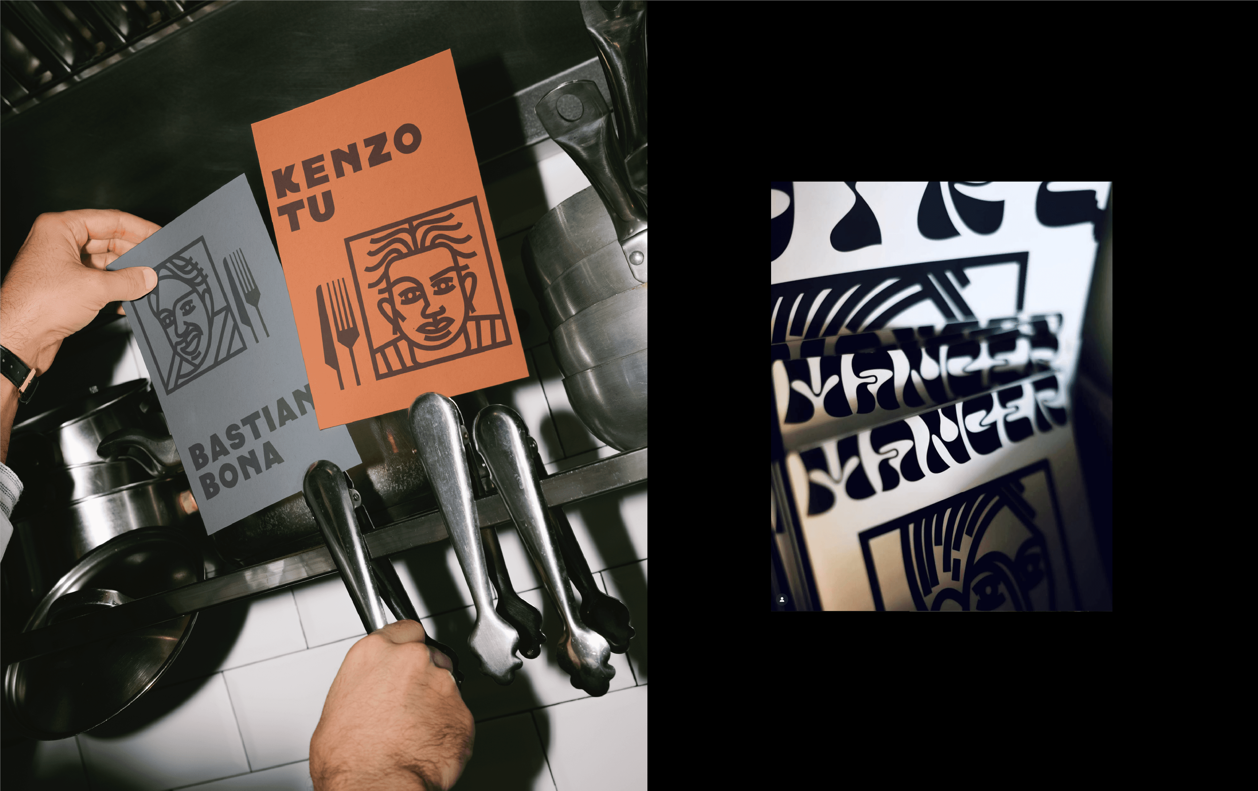 Définition de l’ADN visuel : logo, typographies, palette chromatique et système graphique. Réalisation de l’ensemble des supports de communication : des vouchers aux différents menus, en passant par la collection textile et les contenus dédiés aux réseaux sociaux.
